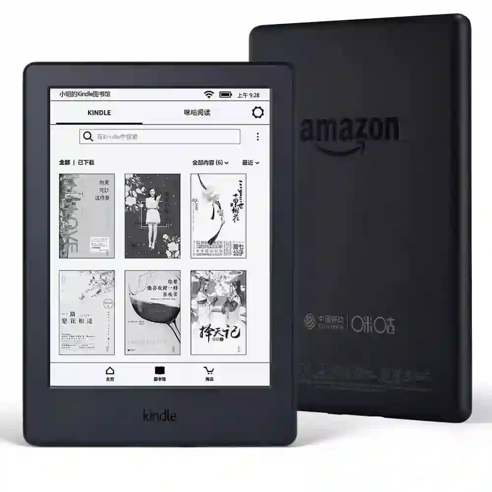 这款是 Kindle 第一次尝试的电子墨水屏的合作,如果你是网文的爱好者,可以考虑入这台设备。价格六百多,可以让你同时拥有 Kindle 的系统和咪咕的系统,一键穿越十分方便,相当于拥有了书目高达一百万的线上图书馆。当然,在配置上,它和 K8 是没有区别的,拥有同样的黑白两个配色。