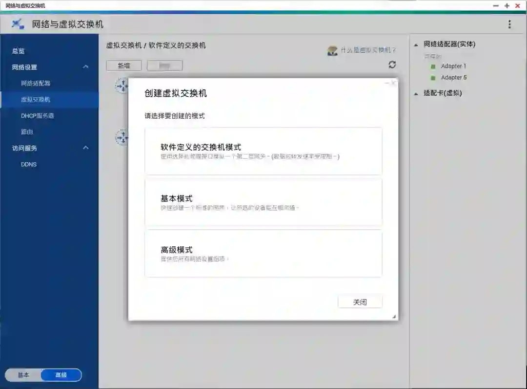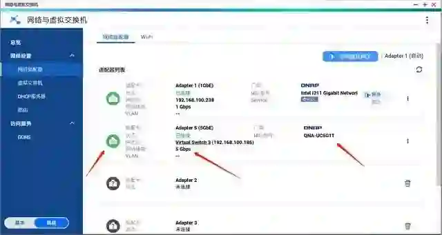 QNAP 的多网口 NAS 本身都是支持虚拟交换机的连接方式,一路下一步即可。