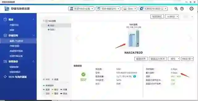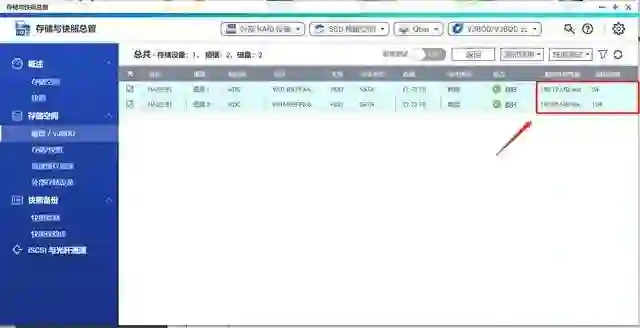 存储管理与快照功能推荐大家开启快照模式,测试我是使用的两块 14T 硬盘,但是后期也考虑会选择差异化存储的方式,这里可以分别显示对应的硬盘,并且查看硬盘状态。