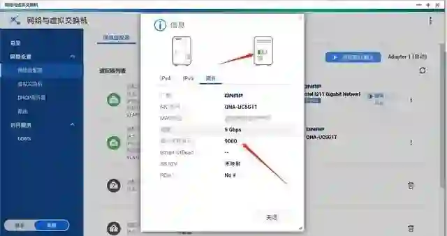 设置后可以在适配器信息中查看速度为 5Gbps,最大传输单元 9000