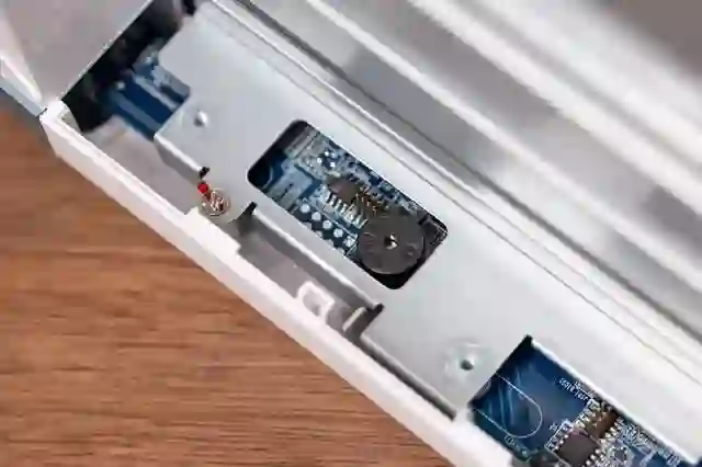 TS-251D 虽然采用双盘位设计,但是硬盘一样采用免螺丝安装设计。在 NAS 正面有一个挡板打开后就可以看到,相比之前的 TS-253B 倒是少了一个 LED 状态显示屏。