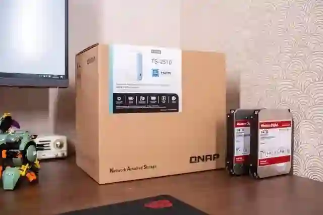 依旧是熟悉牛皮纸包装,包装上贴着产品图片。一起搭配的还有两块西数 14T 红盘作为存储。
