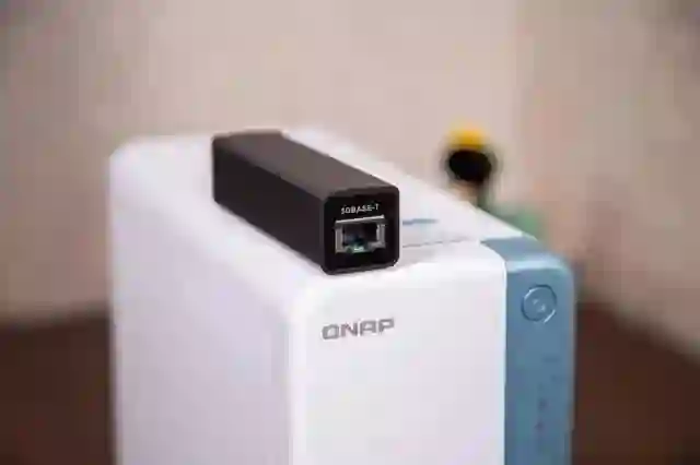 这么多 USB 接口可以做什么呢?首先 USB3.0 接口可以用来扩展,可以挂载更多的硬盘仓库,像是 QNAP 的 TR-004 都是不错的存储扩充方案。此外另外也可以搭配像是 USB 3.2 Gen 1 对 5GbE 网络转换器来更好的释放硬盘读写速度。