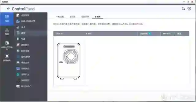 此外在硬件中还可以看到另外还有扩展卡设置,目前没有设备,这个等后期在详细测试以及探讨一下到底一款双盘位 NAS 的 PCIe 扩展意义是什么?比如可以给 NAS 带来哪些扩展,以及实际意义如何。