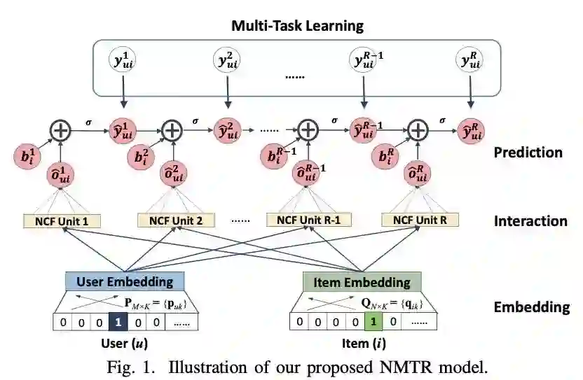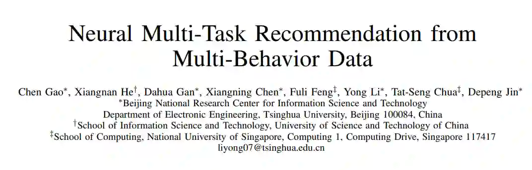 大多数现有的推荐系统只会用到用户单一类型的行为数据,例如在电子商务中的我们可能只会使用到用户购买的行为数据。但是我们认为其他类型的用户行为数据也可以提供非常有价值的信号,例如单击,加购等。本文对此提出了一种新的解决方案NMTR(Neural Multi-Task Recommendation)来学习用户的多行为数据。