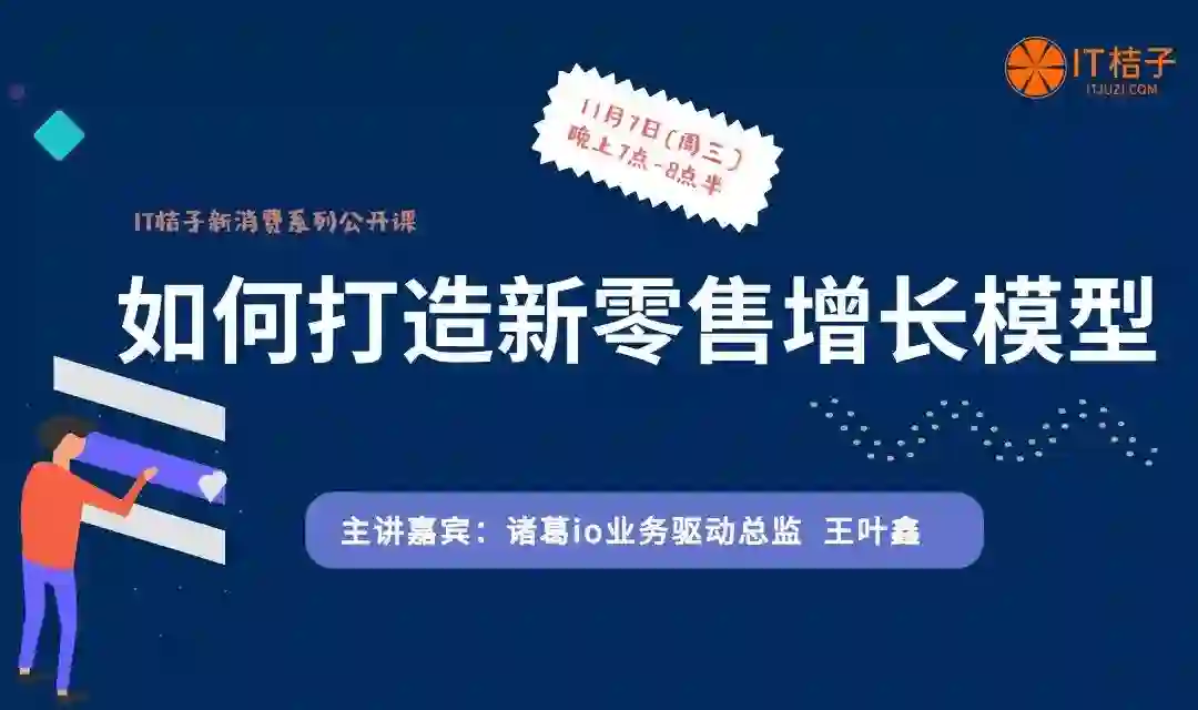 11 月 7 日(周三)晚上 7 点,IT 桔子联合诸葛 IO,将聚焦新消费,与大家分享,如何通过数据驱动增长,精细化运营,低成本快速实现用户增长,打造高效的用户增长体系。
