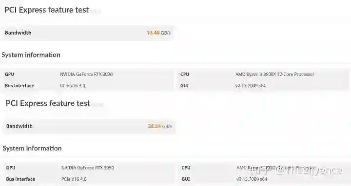 在上篇文章里,测试结果表明RTX3080并不需要PCIe 4.0×16的加持,PCIe 3.0×16就足以使其完整发挥性能,RTX3090应亦如是?