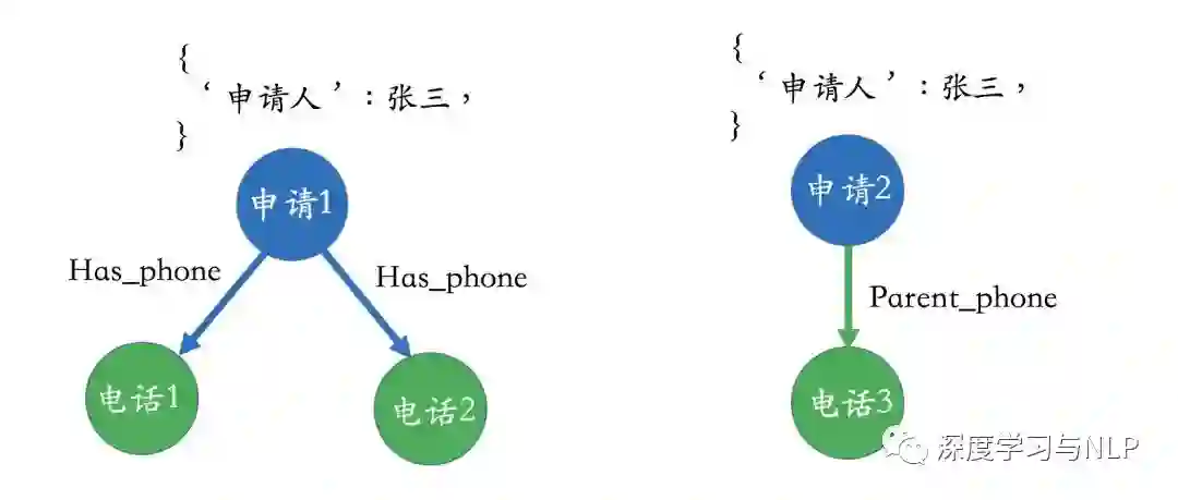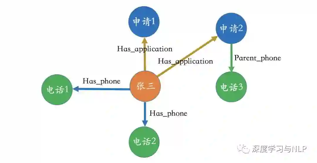 举个例子,可以观察一下下面这个图谱,并试问自己背后的业务逻辑是什么。通过一番观察,其实也很难看出到底业务流程是什么样的。做个简单的解释,这里的实体-“申请”意思就是application,如果对这个领域有所了解,其实就是进件实体。在下面的图中,申请和电话实体之间的“has_phone”,“parent phone”是什么意思呢?