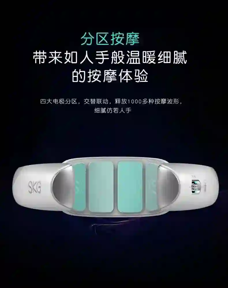 前不久上市的SKG全新K5按摩仪,不仅搭载了秘经通双脉冲技术,还根据人体工程学设计了四个分区,除了能更好的贴合脖颈,四个分区还能够有更多节奏地释放脉冲,产生更多样性、高度复合的按摩体感,避免单调重复的按摩节奏。