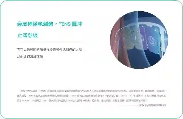 目前常见的主要有TENS和EMS两种脉冲,前者能够阻断疼痛信号传递到大脑,还可以刺激人体分泌更多具有止痛效果的内啡肽,同时促进局部血液循环;EMS脉冲则主要作用于肌肉,能够达到放松肌肉、减少炎症、预防肌肉萎缩、加速肌肉愈合等效果。