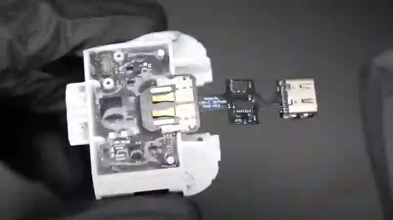 在解决电池问题后,Ken Pillonel开始着手把充电盒的Lightning接口换成USB-C接口。Ken Pillonel称这样做是因为Lightning接口更换不能单独购买,只能从原装充电盒中获得,所以换成USB-C接口可以让AirPods长期可维修。为此,Ken Pillonel专门定制了一个PCB(印刷电路板),在上面焊接必要的组件,并设计一个特殊的套件将所有东西固定在一起。