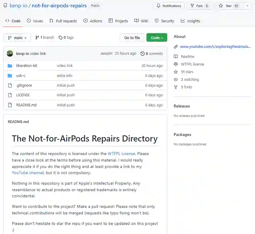 目前,Ken Pillonel已经把该项目的3D打印文件和PCB原理图公布在了GitHub(https://github.com/kenp-io/not-for-airpods-repairs)上,想要DIY并有一定条件的人可以亲自动手试一试。