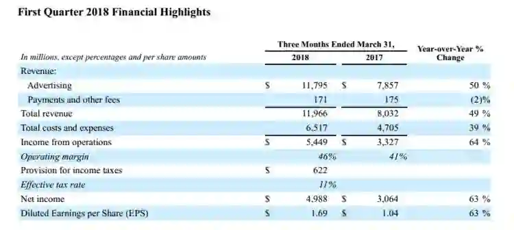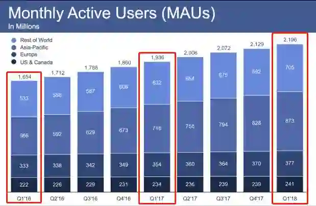 今天凌晨,Facebook 发布了用户隐私信息泄露事故后的第一份财报——2018 年第一季度财务报表。报表数据显示,无论是营收还是利润或是用户量,与去年同期相比,Facebook 相关增长速度或幅度并未出现明显放缓。