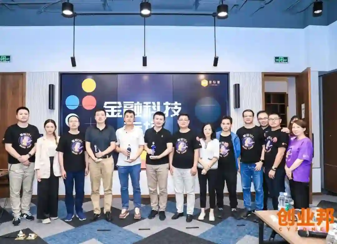 互动交流环节结束后,宜信产业基金合伙人崔峥、罗洪涛,分贝通创始人、CEO兰希与在场的10余位金融科技创业者进行了拍照留念。