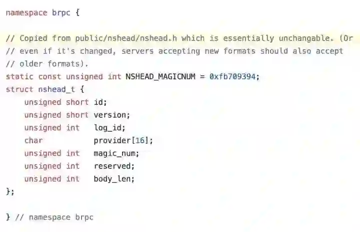 后来这个协议 somehow 变成了百度一个蛮通行的通讯协议,几乎全百度的服务器都在呢喃着这句粤语切口,网卡灯的每一次闪烁都是来自大吃省的亲切问候。机房外的北京城漫天黄沙,机房里的空气却是初夏广东露天大排档的味道。作为一个握手验证字段,要改只能服务端和客户端一起改…… 以任何大点的公司都差不多的一团乱麻的内部服务依赖状态这基本是没法动了。就算到了全新的 BRPC, 也不得不留下对这个老接口的兼容代码: