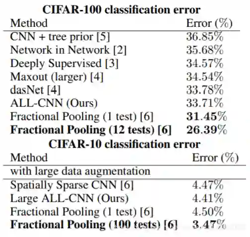 可以看到我们的效果依然很好,超越了前面的网络模型。仅仅被Fractional Pooling超过,但这个模型参数过大,大概50M左右的参数。所以我们的模型表现是十分不错的。
