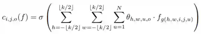 为了理解池化层和卷积层为什么有效,我们返回到公式里面 我们令 「f为特征图」,W, H, N分别是特征图的「宽,高,通道数」对于一般的池化窗口为K的p范数下采样,我们有而对于一般的卷积层,我们需要设定一个权重,进行相乘,并将多个通道结果进行相加。最后再通过激活函数进行激活,形式如下