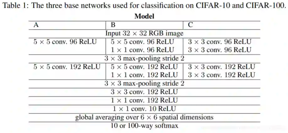 首先我们来看下Model A,B,C 最主要的区别就是拿3x3卷积来替代大卷积核和部分1x1卷积。事实证明使用3x3卷积替代大卷积核,能得到性能上的提升