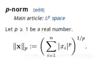 P范数定义如下即求「某个范围内x的P次方和」,最后「再开P次方」