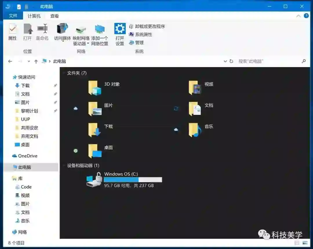 文件资源管理引入了黑色模式,激活方式:前往 Windows 设置里启用黑色模式即可