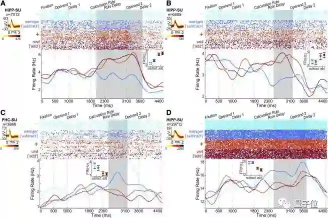 可以看到,图中A、B加法规则情况下,加法神经元(红色)表现出的特定活跃性。C、D(蓝色)所表现出来的减法神经元也是如此。