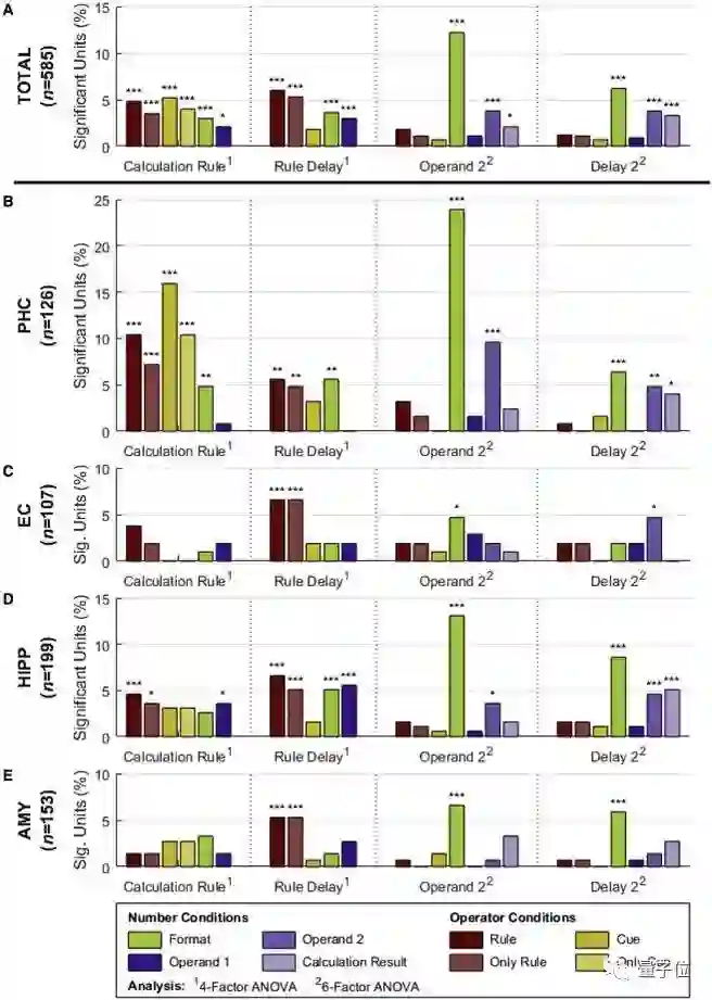 除此之外,团队还发现计算规则的编码与规则提示无关,以及在海马旁皮层 (PHC) 区域(图I),不同的加法神经元在同一个算术任务中交替活跃。