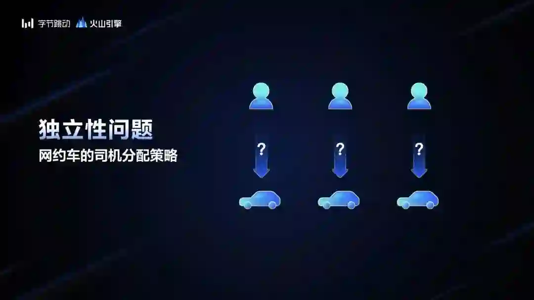 举个例子,网约车的司机分配策略,比如这个网约车分配什么司机?谁离你最近,我就分配,这是一个策略。我们还可以考虑价格,以及车型和时间等等,做别的策略。A 同学做了 A 策略,B 同学做了 B 策略,哪个策略更好?