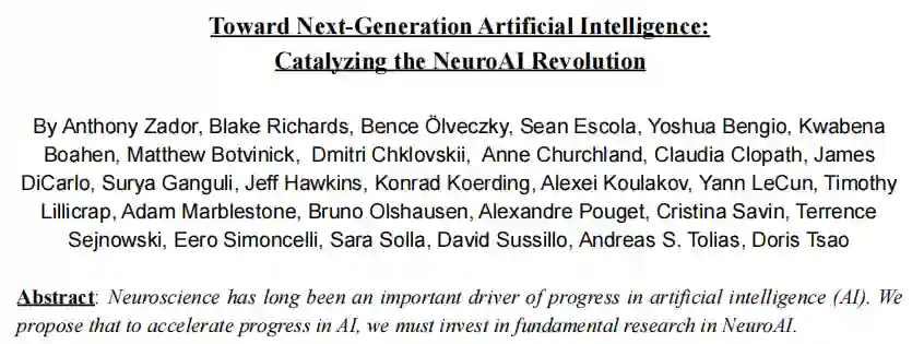 这份以“Toward Next-Generation Artificial Intelligence: Catalyzing the NeuroAI Revolution”为题的白皮书,集结了 Yoshua Bengio、Yann LeCun 两位图灵奖获得者,以及一批致力于机器学习与神经科学结合研究的科学家。