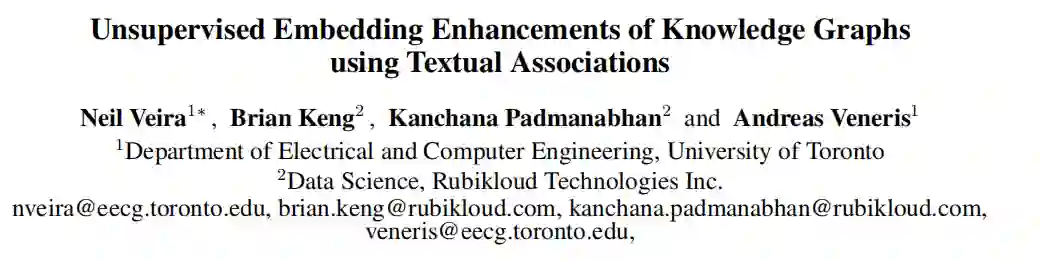 知识图谱嵌入是从多关系数据中提取数据的工具,最近的嵌入模型对从现有数据库中推断新事实具有很高的效率。然而,这种精确结构的数据通常在数量和范围上都是有限的。因此,要充分优化嵌入,还必须考虑更广泛可用的信息源(如文本)。本文描述了一种通过增加实体嵌入和关联词嵌入来整合文本信息的无监督方法。该方法不修改知识图谱嵌入的优化目标,这允许它与已有的嵌入模型集成。同时考虑了两种不同形式的文本数据,并针对每种情况提出了不同的嵌入增强。在第一种情况下,每个实体都有一个描述它的关联文本文档。在第二种情况下,文本文档不可用,相反,实体以单词或短语的形式出现在非结构化的文本片段语料库中。实验表明,这两种方法在应用于多种不同的知识图嵌入模型时,都能有效地提高连接预测的性能。