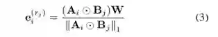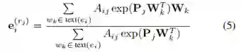 这里⊙表示元素相乘。这样,单词wk对实体向量的总权重是文本中wk的频率(e i)(即Aik)和wk与ri的相关性(即Bjk)的组合。