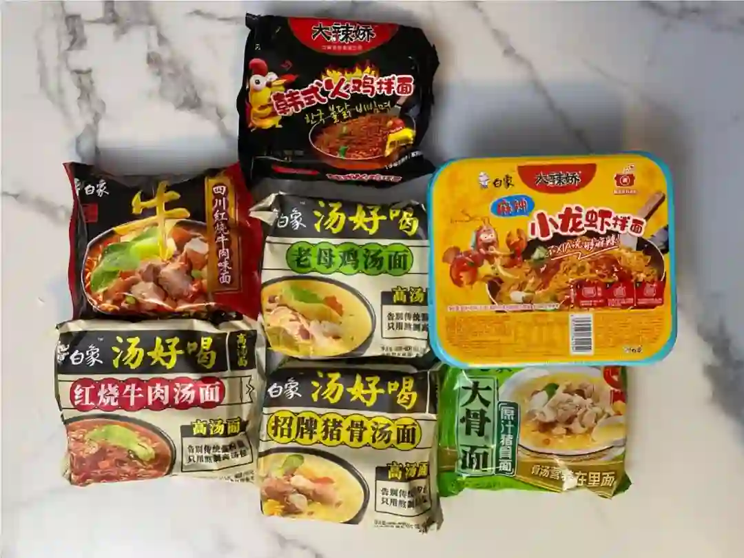 白象最近也是因为关爱残疾人以及315老坛酸菜事件赢了一波好感,为了体会一下它到底吃起来怎么样,李主任火速下单买了7款,分别是白象的韩式火鸡拌面、汤好喝老母鸡汤面、拌乐多小龙虾拌面、大骨面、四川红烧牛肉面、经典牛肉汤面、汤好喝招牌猪骨汤面。