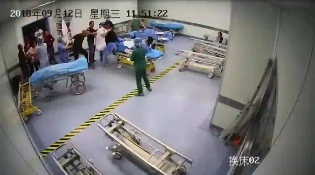 此时,刚刚在第四手术室结束手术的麻醉师姚瑞林来到转运间,莫名地被卷入冲突,并遭到了死者家属的追打,致全身多处软组织损伤。