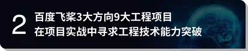 百度飞桨与后厂理工学院精选NLP/CV/计算广告与机器学习3大方向9大AI前沿工程项目,并提供脱敏数据集供学员实战使用,旨在培养具有核心竞争力的AI工程师。