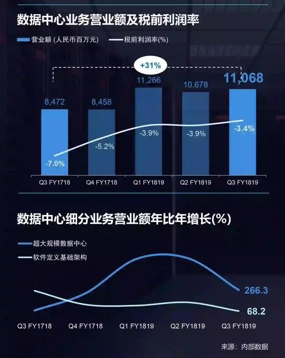 数据中心业务在第三财季的营业额继续保持了双位数增长,年比年增速超过30%,连续第五个季度实现盈利水平的改善。