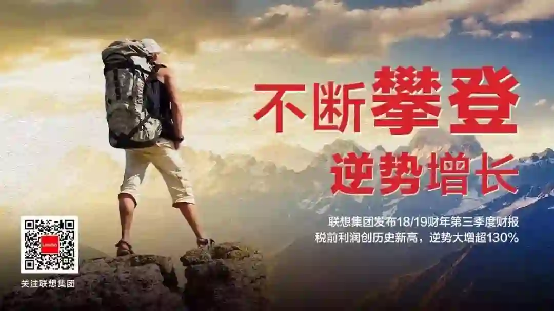 对于联想集团连续取得六个季度的业绩增长,并非一日罗马。杨元庆表示:“这是四年前推行的战略开始展现出强有力的成效。联想集团就像是永不停歇的登山者,不断瞄准更高的目标。从一个峰顶到另一个峰顶,有时候意味着需要先下到山坳里,开发新工具、掌握新技能、寻找新路径,从而到达新的顶峰。但是对联想集团而言,目标一旦确定,就决不轻易放弃。”