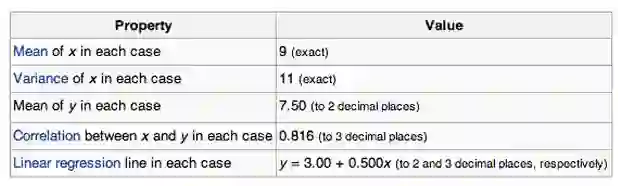 假设你有n个有两个连续变量的数据集(y是因变量,x是自变量)下表给出了这些数据集的信息总结:
