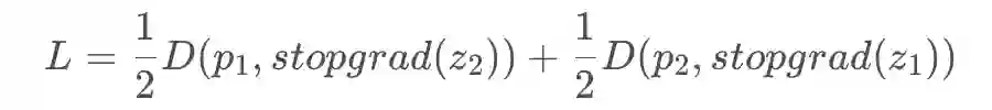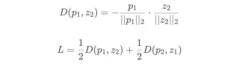 L = D(p1, z2)/2 + D(p2, z1)/2 # loss