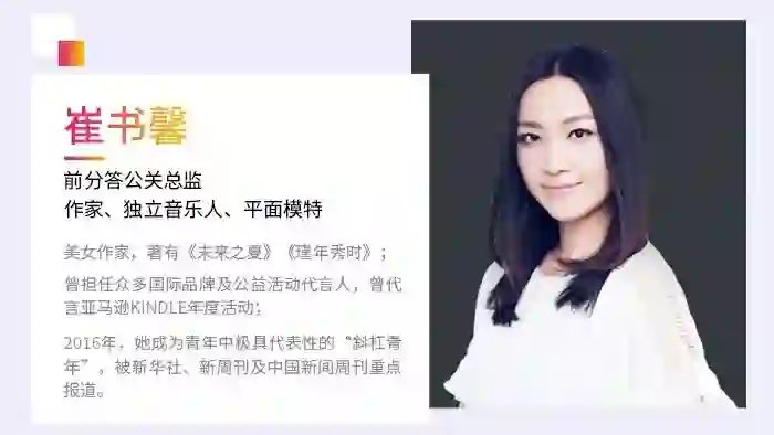 曾代言亚马逊kindle年度活动,既能写歌又能写书的才女、前分答公关总监崔书馨;