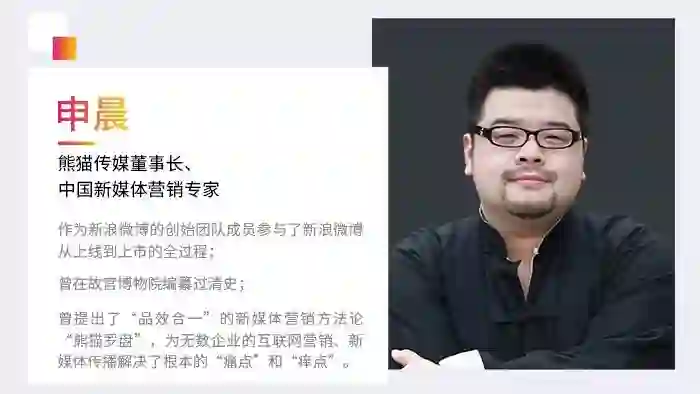 新浪微博创始团队成员、中国新媒体营销专家,每年斩获国内外知名的行业案例奖超过100个的熊猫传媒董事长申晨;