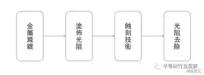 金属溅镀:将欲使用的金属材料均匀洒在晶圆片上,形成一薄膜。