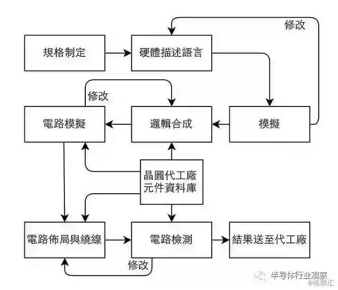 在 IC 生产流程中,IC 多由专业 IC 设计公司进行规划、设计,像是联发科、高通、Intel 等知名大厂,都自行设计各自的 IC 芯片,提供不同规格、效能的芯片给下游厂商选择。因为 IC 是由各厂自行设计,所以 IC 设计十分仰赖工程师的技术,工程师的素质影响着一间企业的价值。然而,工程师们在设计一颗 IC 芯片时,究竟有那些步骤?设计流程可以简单分成如下。