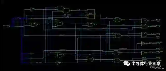 有了完整规画后,接下来便是画出平面的设计蓝图。在 IC 设计中,逻辑合成这个步骤便是将确定无误的 HDL code,放入电子设计自动化工具(EDA tool),让电脑将 HDL code 转换成逻辑电路,产生如下的电路图。之后,反覆的确定此逻辑闸设计图是否符合规格并修改,直到功能正确为止。