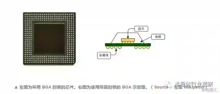 至于球格阵列(Ball Grid Array,BGA)封装,和 DIP 相比封装体积较小,可轻易的放入体积较小的装置中。此外,因为接脚位在芯片下方,和 DIP 相比,可容纳更多的金属接脚