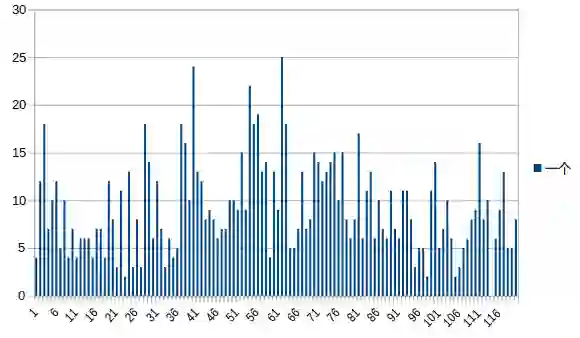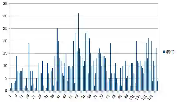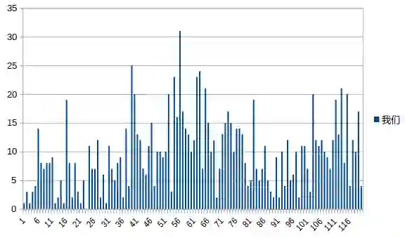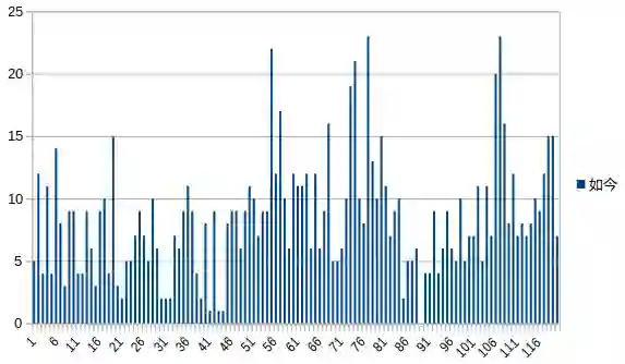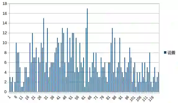 (图中横坐标是章回编号,纵坐标是“笑道”的词频)