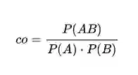 凝固度的定义是:一个片段出现的频率比左右两部分分别出现的频率的乘积高出多少倍(注意,频率表示的是出现的比例,而频数表示的是出现的次数)。不过这句话太拗口了,还是用公式描述比较好。如果 P(AB) 是片段出现的频率,P(A) 是片段左边的字的出现的频率, P(B) 是右边的字出现的频率,那么凝固度 co 就是: