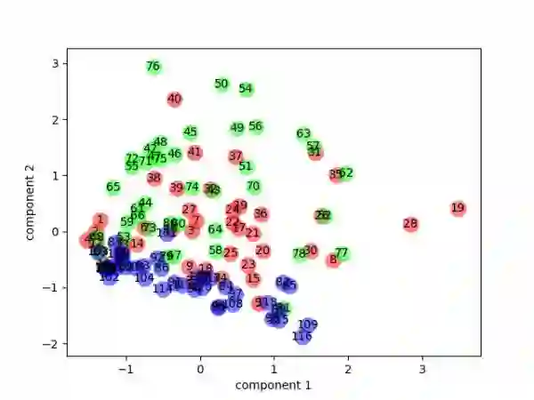 理论上,有了特征之后,我们就可以比较各个章节的相似性了。然而问题是,现在我们有 50 个特征,也就是说现在的数据空间是 50 维的,这对于想象四维空间都难的人类来说是很难可视化的。对于高维数据的可视化问题来说,PCA 是一个很好用的数学工具。