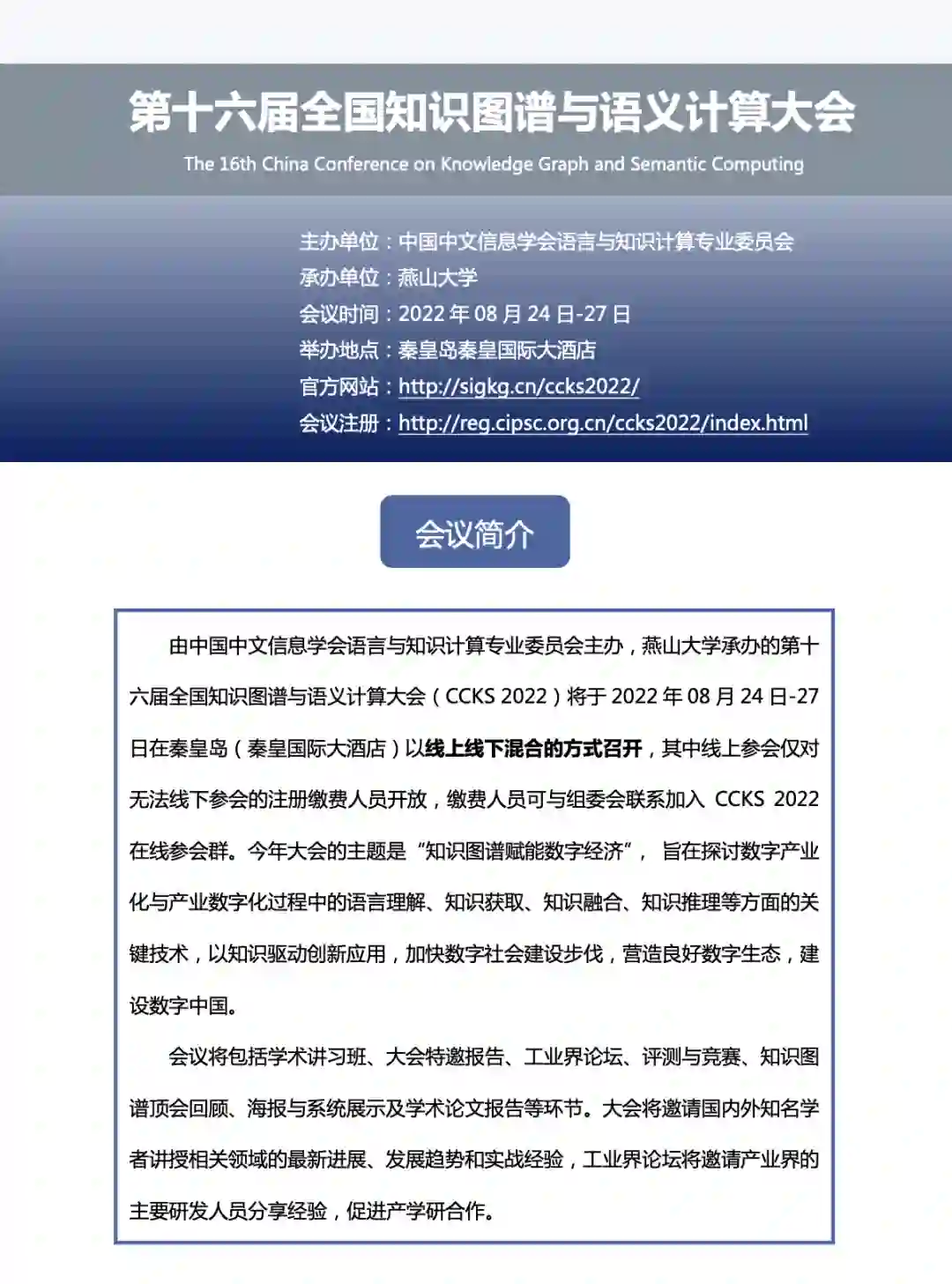 会议交流 | 第十六届全国知识图谱与语义计算大会 (CCKS2022)
