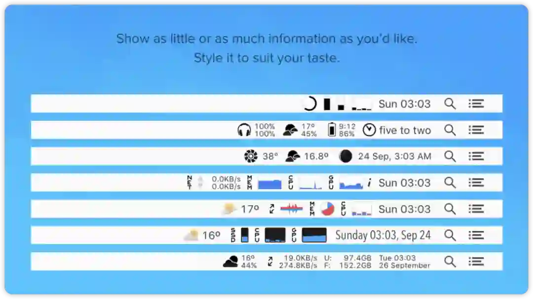 按住 ⌥ 时点击菜单栏的 Wi-Fi / 蓝牙 / 菜单项,显示的是详细信息或隐藏选项