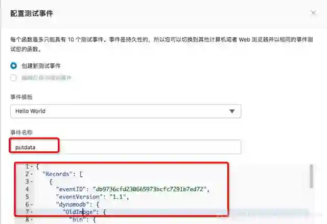 test_data_put.json 模拟向DynamoDB中插入一条数据的事件,查看文件