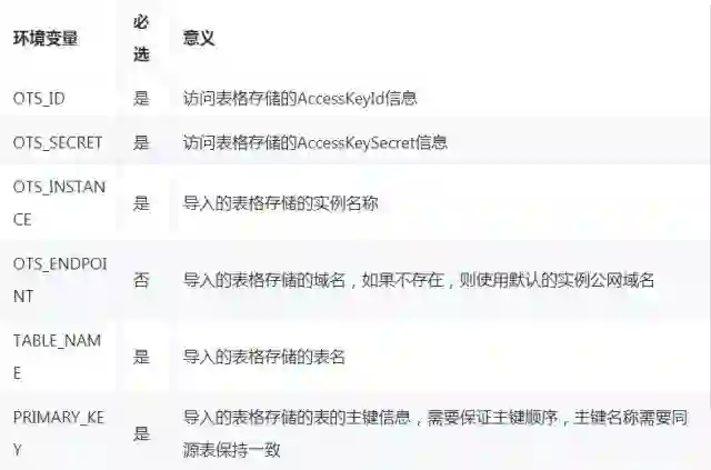 在数据导入时,需要 TableStore 实例名、AK等相关信息,我们可以使用一下两种方式:
